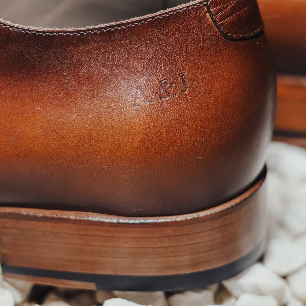O primeiro nível é para quem deseja um toque discreto, mas carregado de significado. O cliente pode gravar até 3 letras no cabedal do sapato — geralmente iniciais do próprio nome ou de alguém especial.