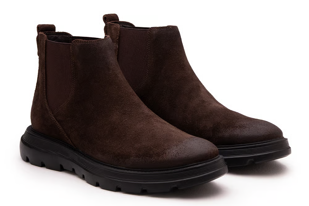 O contraste entre a camurça sofisticada e o solado robusto cria uma identidade forte. É uma bota que transmite segurança e atitude, mantendo leveza e conforto. O desenho tratorado melhora a tração em diferentes superfícies, tornando o modelo funcional tanto para o ambiente urbano quanto para momentos mais descontraídos.