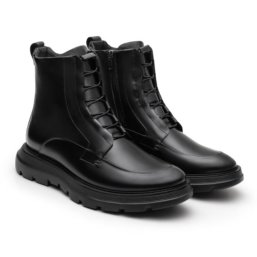 Ao observar a Augustus, percebe-se um equilíbrio cuidadoso entre linhas modernas e volumes bem definidos. O design transmite solidez, porém evita excessos. Essa combinação faz com que a bota dialogue com diferentes contextos do cotidiano urbano, indo além do óbvio e se afastando do aspecto rústico tradicional de muitos coturnos. O resultado é um modelo contemporâneo, alinhado ao estilo de homens que valorizam impacto visual com refinamento.