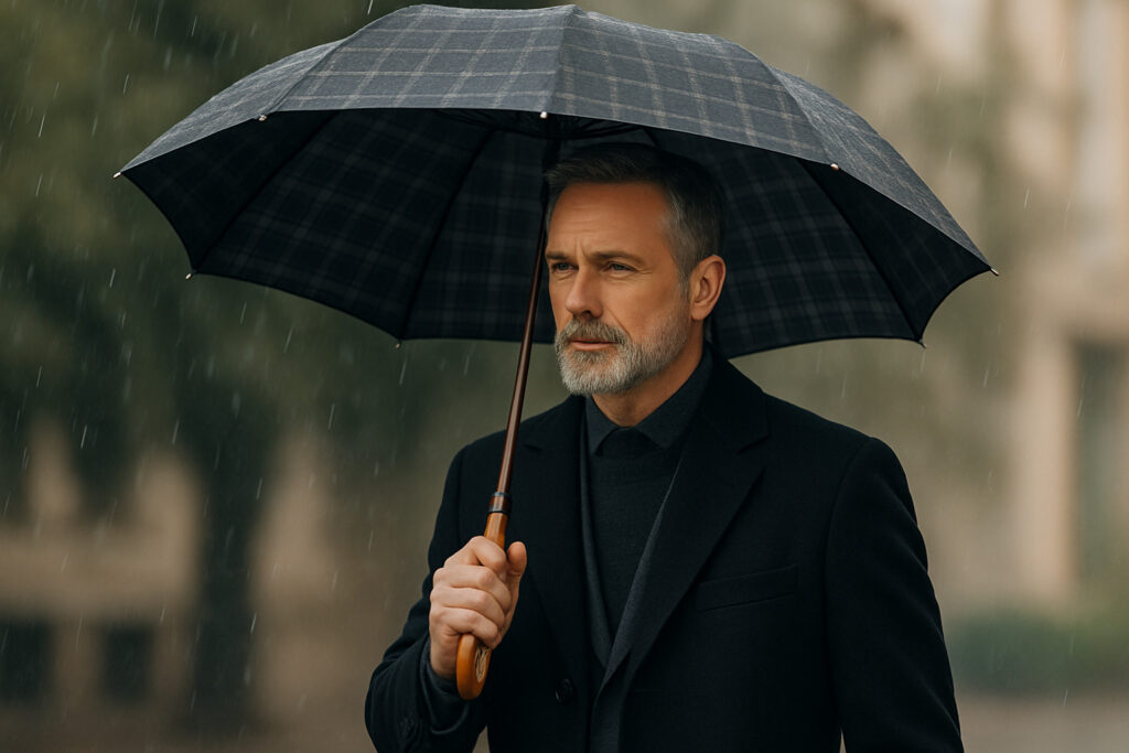 Para a proteção máxima contra a chuva, um guarda-chuva de alta qualidade é indispensável. Escolha um modelo com estrutura resistente ao vento e design que complemente seu estilo geral. Um guarda-chuva clássico em preto ou com um discreto padrão de xadrez pode ser uma adição tanto funcional quanto estilosa ao seu arsenal de acessórios para dias chuvosos.